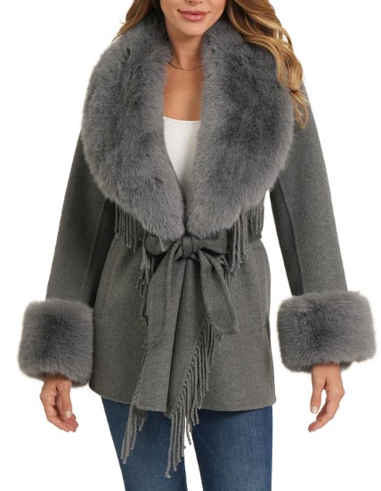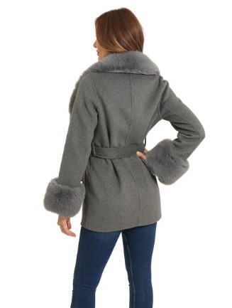 Wool jacket with detachable faux fur on both the collar and sleeves